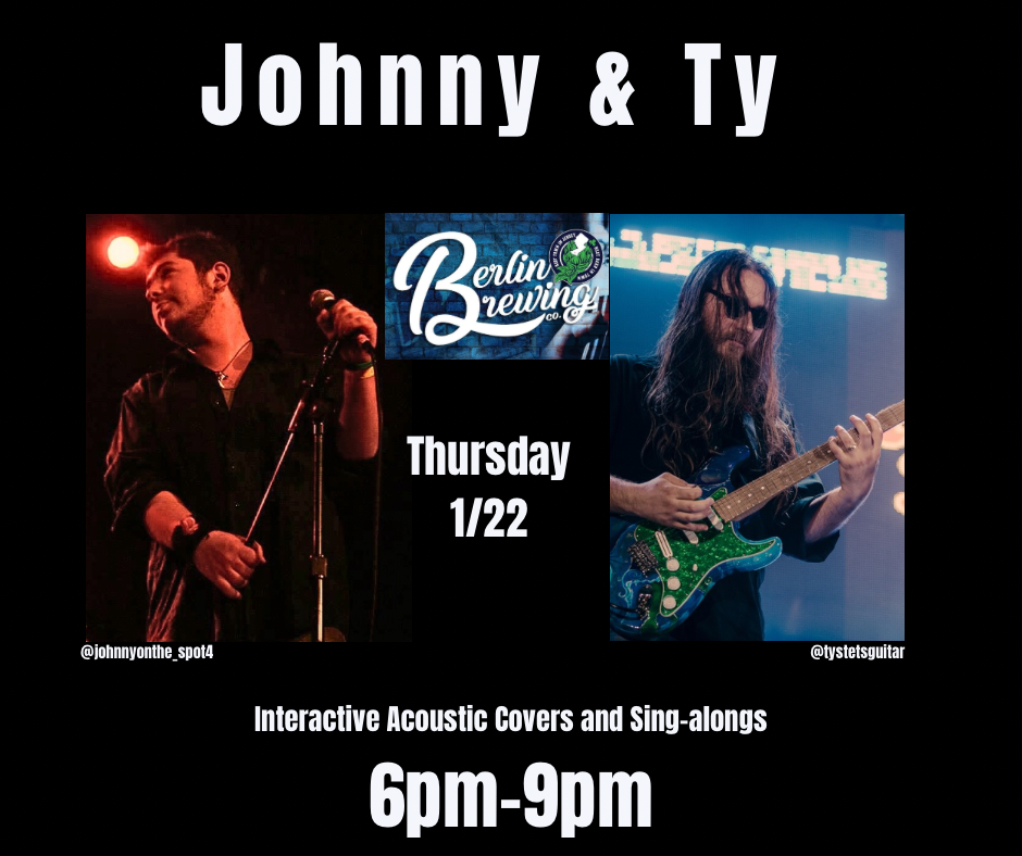 Hey, Everyone! Join us in the taproom this Thursday, January 22, from 6–9 PM for Johnny & Ty’s Interactive Acoustic Covers & Sing‑Alongs that turn…